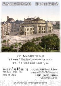毘沙門天管弦楽団のプログラムは、何と言ってもその表紙のデザインに大きな特徴があります。この純和風な表紙は一見しただけでは、とても西洋音楽をやっている団体というイメージはなく、「和太鼓」の集団にしか思われません。